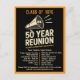 Celebrate your big reunion in bold style with this eye-catching high school reunion invitation featuring a retro megaphone design. Perfect for the Class of 1976 or any year, this customizable card includes editable text for your event date, time, location, and RSVP. Great for 50-year reunions, alumni parties, or multi-class events. Professionally designed for both print and digital sharing. Make your celebration unforgettable!