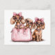Ilustracion lindo de perros de moda con joyas y gafas sentados al lado de un bolso rosa. ¡Perfecto para los amantes de la moda y de las mascotas!