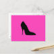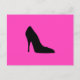 Forma negra de un solo zapato de tacón alto contra un fondo rosa brillante.