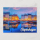 Esta vibrante postal muestra una fotografía de la icónica ciudad de Copenhague, Dinamarca. Esta deliciosa postal sería ideal para los mejores amigos, familiares y colegas.