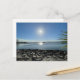 Esta impresionante postal panorámica cuenta con una vibrante vista al océano, un sol radiante y un brillante cielo azul. Las tranquilas aguas azules se extienden hasta el horizonte, mientras que las rocas costeras accidentadas en primer plano le dan un toque de belleza natural.