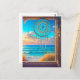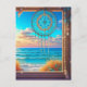 Bonito rayador colgado en una ventana que domina la playa de las olas azules del océano.
