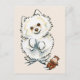 Caricatura de un panomerano crema/blanco, inspirado en un perro llamado "Boo Boo" al que se describe como juguetón y le encanta la cámara. Cuando quiere atención, pide que le ondeen las patas. Dibujo de lápiz y tinta por Andie.