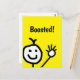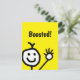 Diseño con una cara sonriente linda y una mano ondulante con el lema '¡Impulsado!' Demuestre que usted ha tenido la vacuna Booster. Personalice fácilmente este diseño editando el texto de la plantilla o cambie el color de fondo de un amarillo brillante. ¡Gracias por ver mis diseños!