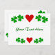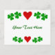 tarjeta bonita con bordes de trébol y corazón rojo. Cambie o elimine el texto.