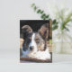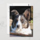 Un hermoso perro de granja de colonos fronterizos atrapado escondiéndose detrás de un remolque tractor.