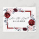 Boda floral con temática de pizarra rosa polvorienta de Borgoña salva la postal de fecha con elegante ramo de borgoña, vino, azul polvoriento, rubor , rosas y capullos de flores de peón y polvorientas hojas de eucalipto verde y marco geométrico neutro purpurina de imitación roja. Comuníquese conmigo para obtener ayuda sobre la personalización o si necesita cualquier otro producto con este diseño