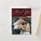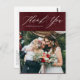 Borgoña Elegante Guión Boda Vertical Gracias Postcard. Elegante foto gracias postal con escritura elegante con fondo de color burdeos. Esta original y elegante tarjeta de agradecimiento es totalmente personalizable. Perfecto para bodas, graduaciones y otros eventos. Personalice agregando sus fotos favoritas. Disponible como tarjeta plana o plegada.
