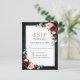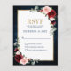 Watercolor rojo burdeos de la marina rosa rubor boda floral RSVP postal plantilla con marco dorado y letras doradas con follaje botánico verde y hojas de eucalipto en fondo azul marino. Este hermoso diseño fácil de personalizar puede coincidir fácilmente con sus colores, estilos y temas bodas y es una elección perfecta para bodas de otoño o invierno. Puede encontrar más diseños coincidentes de mi tienda o contactarse conmigo si necesita ayuda en la personalización del diseño.