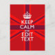 Tu "Keep Calm" personalizado que dice sobre una vibrante decoración de jack de unión roja y borgoña. Un estilo "Keep Calm" personalizado que dice sobre un regalo amable. Intenta con humor o capricho con tus palabras creativas en dos líneas editables de texto. Recuerde usar las letras CAPITAL para obtener los mejores resultados. Utilice el vínculo "Preguntar a este diseñador" para contactarnos con sus solicitudes de diseño especiales o para obtener ayuda con sus necesidades de personalización.