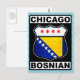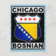 Escudo clásico de diseño de estilo de carretera, con el texto Chicago Bosnian, y las banderas de la ciudad de Chciago y Bosnia y Herzegovina