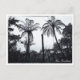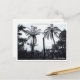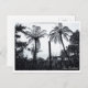 Postal: Bosque de árboles de fern y selva en Nueva Zelanda. Fotografía en blanco y negro desde grandes espacios al aire libre, con grandes árboles de helecho contra el cielo, que son un recordatorio tradicional de las selvas tropicales y la naturaleza salvaje en el campo. Serie Viajes/Paisajes - Isla del Norte, Nueva Zelanda. Fotografía original/Arte/Diseño de work4dream.