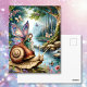 Hermosa hada sobre un caracol en un mágico bosque con ranas, mariposas y otras cosas de cuento de hadas.
