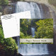 Persiguiendo Cascadas en Carolina del Norte. La hermosa y impresionante cascada de Looking Glass Falls en el bosque nacional Pisgah en las montañas Blue Ridge de Carolina del Norte, se ve a través de un bosque de madera verde en esta postal fotográfica. En lo profundo de un desfiladero, el agua blanca se precipita por esta cascada de 60 pies de altura cerca de Brevard, NC en el condado de Transylvania, la Tierra de las Cascadas.