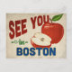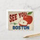 Una encantadora postal de viaje vintage de Boston Massachusetts con una hermosa manzana roja, junto con un divertido texto de estilo retro que dice, "Nos vemos en Boston"