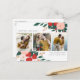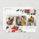 Desee a su familia y amigos unas vacaciones felices con nuestra célebre postal de vacaciones de Winter Botanicals. La tarjeta postal de vacaciones muestra 3 fotos en la parte delantera enmarcadas en blanco con ramos de flores pintadas de rojo y rosa con hojas verdes y acentos dorados. Personalice la parte delantera agregando el saludo de un personalizado, su nombre y el año actual. El espacio de funciones de la parte posterior para la dirección de retorno y el mensaje de personalizado.