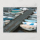 Personalizar el bote de fila en la tarjeta postal Dock con tu propio mensaje o texto personal. Esta postal con temática de barco personalizado cuenta con una fotografía de pequeños barcos pesqueros atados a un muelle de madera acristalado en un puerto deportivo de Ogunquit, Maine.