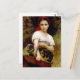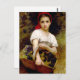 Postal de Bouguereau Harvester. Óleo sobre lienzo de 1875. William Adolphe Bouguereau pintó una variedad de jóvenes chicas dedicados a tareas diarias. Harvester muestra a una joven recogiendo uvas violetas en una canasta de mimbre. El chica tiene el pelo oscuro y los ojos oscuros, y lleva un cinturón de cabeza rojo y un smock blanco. Ella se para en un viñedo mirando con atención al espectador. Un bello regalo para los aficionados a Bouguereau, neoclasicismo, elaboración de vino y arte francés.