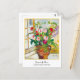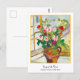 Postal de arte fino con el dibujo de Suzanne Valadon (1865-1938), titulado Bouquet de Fleurs. Una artista francesa que fue aclamada pintora en su época. Un ramo de flores rojas y rosas con vegetación en un cántaro de cerámica junto a la ventana.