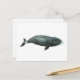 The design on the postcard depicts a Bowhead Whale illustrated by the artist Claudia Volonté