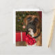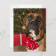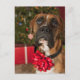 Boxeador con arco en el cuello, árbol de Navidad en segundo plano