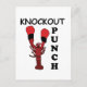 Postal de boxeo en bogavante Knockout Punch diseñada por Nisha Prabhu. Ilustracion de langosta rojo en el envoltorio de boxeo con el texto "Knockout Punch". ¡Envíe un puñetazo de diversión con nuestra tarjeta postal Knockout de boxeo de langosta! Este diseño lúdico presenta una fiel langosta que lanza un golpe de knockout, lo que lo convierte en una manera única y llamativa de enviar sus saludos o buenos deseos. Tanto si eres un entusiasta del boxeo como si simplemente te gusta la vida marina, esta postal seguro que sobresaldrá y traerá una sonrisa a la cara del destinatario. ¡Comparte algo de humor y espíritu de lucha con esta divertida y memorable postal!