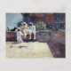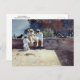 Postal de arte fino con la pintura acuarela del artista estadounidense Winslow Homer (1836-1910), Boys and Kitten (1873). Tres chicos sentados en una pared de piedra con un gato blanco. Un gato negro está asomándose por detrás de la pared.