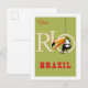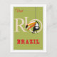 Retro vintage style yet fresh and modern travel poster for Rio, Brazil with cartoon toucan bird wearing a bow tie ,public domain