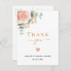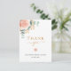 Una moderna y elegante ducha de novia con tarjeta de agradecimiento. Un fondo blanco moda. Decorada con un oro subió y hojas de eucaliptos color rosa rosa, floral, florida y verde acuático, brotes, vegetación y brotes de oro falsos. Letras negras y doradas. Al frente del texto: Gracias, nombre y fecha. Parte posterior: plantilla para su nota de agradecimiento y nombre.