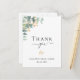 Una moderna y elegante ducha de novia con tarjeta de agradecimiento. Un fondo blanco moda. Decorada con hojas de eucaliptos de color verde acuático, escarabajos, vegetación y una imitación de las espirales doradas. Texto negro. Al frente del texto: Gracias, nombre y fecha. Parte posterior: plantilla para su nota de agradecimiento y nombre.