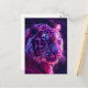 tigre iluminado por rastros de luz de neón rojo púrpura, creando un efecto cósmico e hipnotizante.