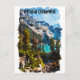 Hermosa postal acuarela que presenta el impresionante paisaje y paisaje de la Columbia Británica, Canadá con espectaculares vistas a las montañas. Funciona como un recuerdo de viaje y una idea de regalo.
