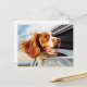 Postal Brittany spaniel en la ventana del coche