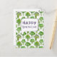 Tarjeta de cumpleaños con un fondo estampado compuesto por ilustraciones de acuarela del vegetal favorito de todos - brócoli