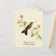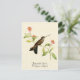 Tarjeta postal con un ilustracion vintage de historia natural de Antoine-Germain Bevalet, c. 1874, del colibrí Bronzy Inca (Coeligena coeligena.) Un colibrí marrón y verde con la garganta moteada descansa sobre una planta tropical de barnadesia con flores brillantes de color rosa, sobre un fondo luminoso de color amarillo pergamino. Limpiado y mejorado digitalmente, conservando sus características vintage. Presenta nombres comunes y científicos en fuentes decorativas.
