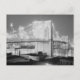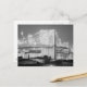 Esta es una fotografía en blanco y negro del puente de Brooklyn por la noche.