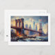 Un dinámico paisaje urbano representa el famoso puente de Brooklyn en medio de un vibrante entorno urbano. Las enérgicas pinceladas capturan el movimiento del agua y la bulliciosa vida de la ciudad detrás del puente.