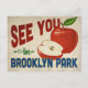 Una encantadora postal de viaje vintage de Brooklyn Park Minnesota con una hermosa manzana roja, junto con un divertido texto de estilo retro que dice "Nos vemos en Brooklyn Park"