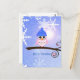 Copos de nieve blancos de invierno con lechuza rosa brillante sobre una gorra de esquí azul peringuil: "Brrr...Winter", postal.