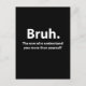 Postal Bruh Typography Bruh diseñada por Nisha Prabhu. ¡Envíen algo de actitud con esta tarjeta postal de tipografía bruta! Perfecto para cualquier ocasión, este diseño audaz y pegadizo seguramente hará una declaración. Ya sea que estés diciendo "hey hermano" o simplemente quieras agregar un poco de encanto a tu correo, esta postal es la elección perfecta. Añade algo de zazzle a tu correspondencia con este diseño fresco y moderno. ¡Elige la tuya!