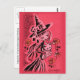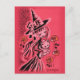 Una linda bruja de Halloween sosteniendo un gatito, con rosas en el fondo.