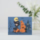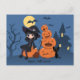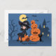 Postal Bruja de Halloween, gato negro y calabazas