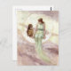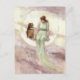 Postal Bruja y búho en la acuarela de la luna