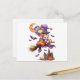 Una adorable bruja vuela en su escoba con un gatito mullido en una pequeña capa. Debajo hay casas de calabaza, y en el cielo una luna sonriente y pequeños murciélagos con gafas. Las obras de arte están decoradas al estilo personalizado kawaii y cuentan con muchos detalles divertidos para explorar.