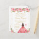 Esta elegante y glamorosa invitación a los dieciséis años incluye una hermosa princesa con el pelo de morena y piel clara en un vestido de bolas rosa. El texto combina el guión manuscrito y las fuentes sans serif modernas para un aspecto elegante y sofisticado. Los arreglos florales, las mariposas y los confeti dorados crean una perfecta mezcla de rústico y moda. Gráficos de www.etsy.com/uk/shop/SunflowerDayLove