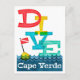Colorido diseño de escoria de Cabo Verde África. Tipografía retro al estilo de inkpress con la palabra "buceo", junto con una bandera scuba flotando en el océano.
