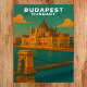 An iconic suspension bridge anchors the foreground, leading the eye toward the historic skyline under a warm sunset sky. A perfect keepsake for Hungary travelers, architecture lovers, and fans of European cityscapes. This souvenir is a timeless way to remember the romantic atmosphere and grand stone monuments of the Hungarian capital.