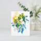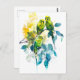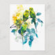 Postal Budgerigars acuarelas en el árbol de eucalipto