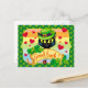 Tarjeta de saludo del Día de San Patricio con gato negro con suerte en gorra verde