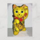 Un gato Maneki Neko amarillo brillante sobre productos frescos de Zazzle. En Japón, estos gatos son vistos en las entradas a las tiendas para recibir a los clientes y traer buena suerte a todos.